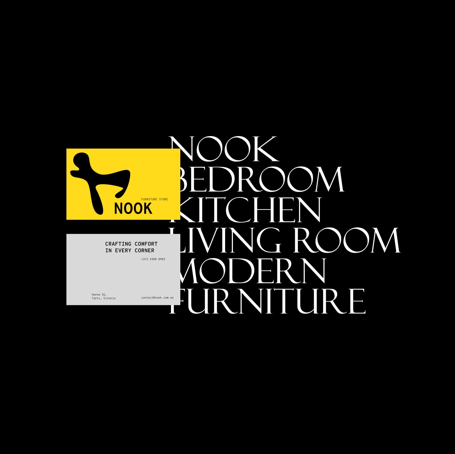 A refined brand concept designed for NOOK Furniture Store, combining bold typography, minimalist layout, and impactful visual storytelling.